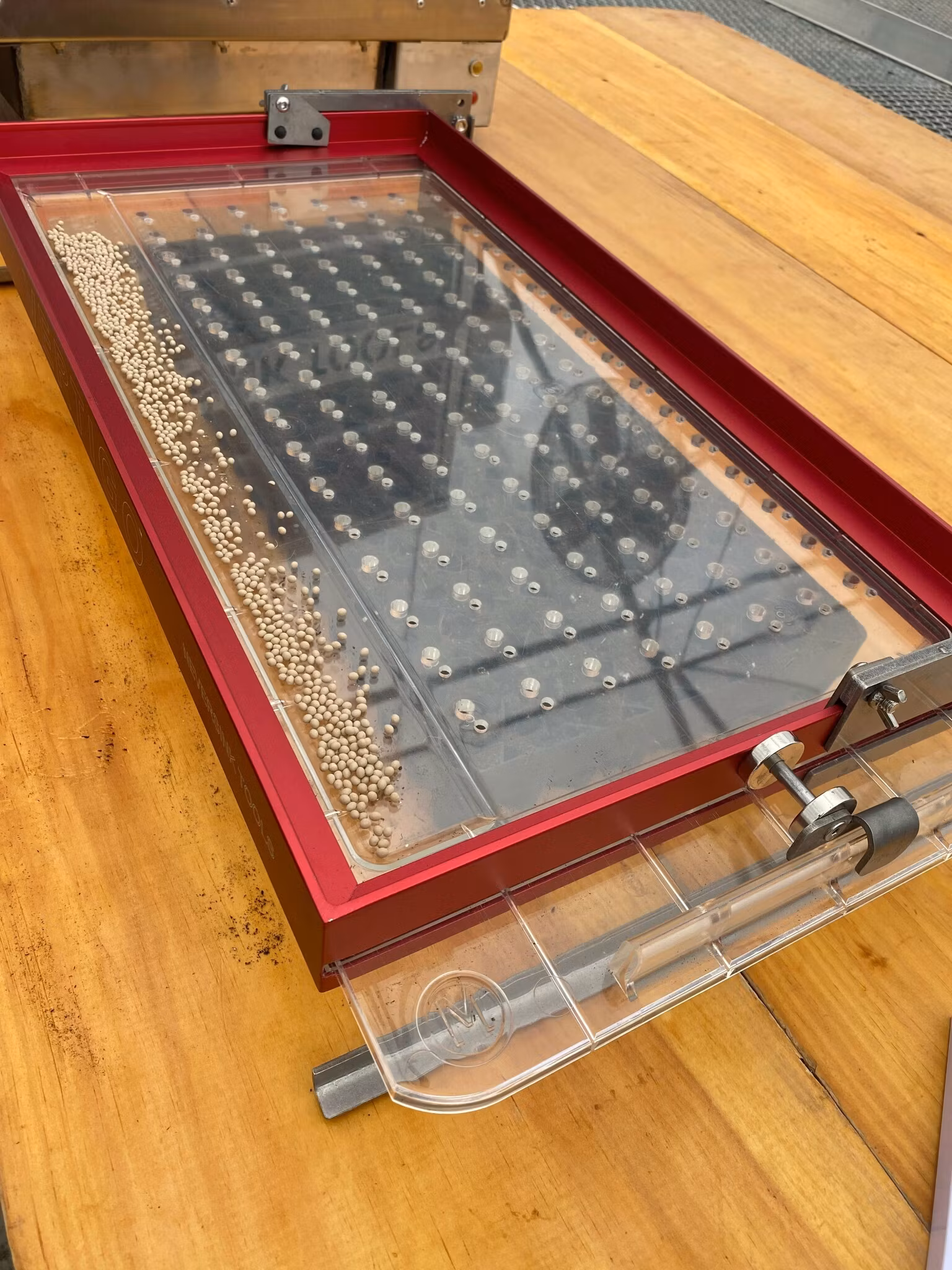 För att byta platta skjuter du bara ut den befintliga och skjuter in nästa. Det är byggt för tempo – särskilt när du växlar mellan olika fröstorlekar.